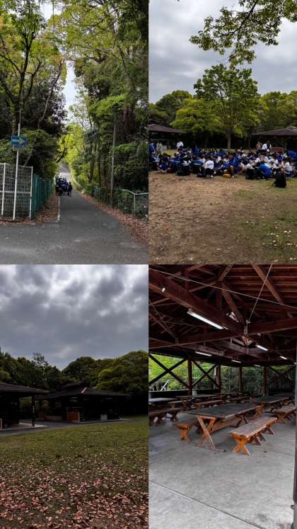 今から野外炊事です。スタッフの方が色々と説明してくださっています。ここには自然の植物や動物がいるとのことで、行動には注意しましょうとのことでした。