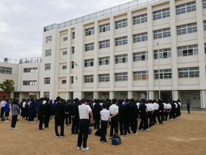4/28 月曜朝の全校集会---とは言え、2年生3年生だけです
