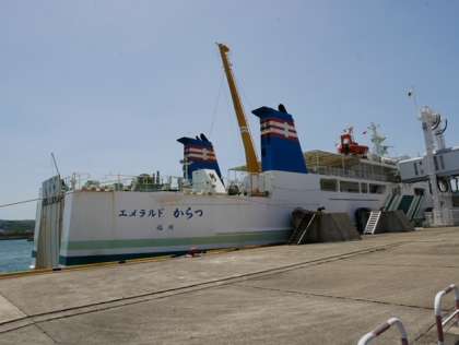 無事に唐津東港に到着しました。綺麗な青空です。この船に乗って壱岐に向かいます。風も波もないので揺れはさほどではないと思いますが、酔わないかやや心配。船酔いする子、ガッツで乗り切るべし。ちなみに校長先生も船に弱いです。