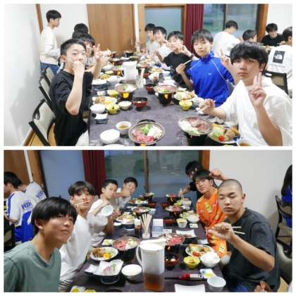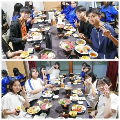 入室後、さっそく夕食をいただきました。おおっ、献立の写真を撮るのを忘れて食べてしまいましたが、今日の夕食はお造り、壱岐牛の陶板焼き、唐揚げ、ミンチカツ、野菜の浅漬け、白身団子のお吸いもの、炊きたてご飯 でした。食べ盛りの子どもたち献立です。大人にはちょっとお腹いっぱいすぎましたが、残さずいただきました。ごちそうさまでした。