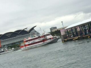 予定通り、博多港を12:55に出港します。乗船するジェットフォイルが入港してきました。