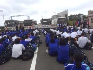 島の皆さんから温かい歓迎をうけ、いよいよ、島内をバスで移動します。