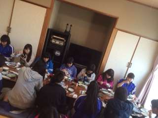 みんな元気です。宿舎の外で朝の集いをしたあと、朝ごはんをモリモリ食べてます。
