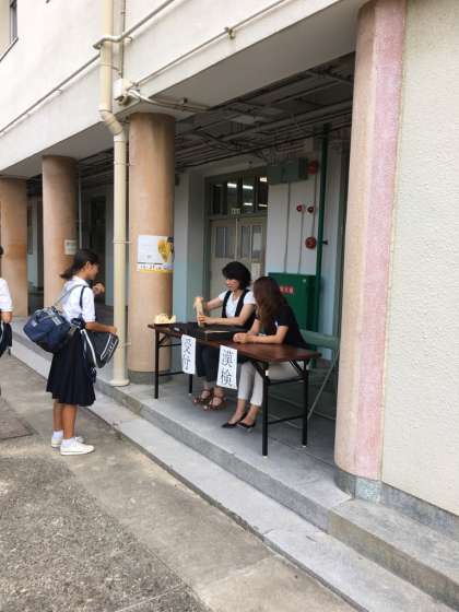 9月7日(本日)と9月8日(明日)の朝 8時から8時30分まで、正門玄関付近で受付をしています。