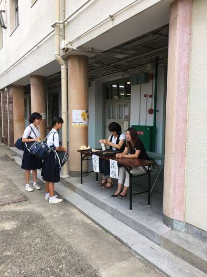 PTA役員の皆さんにお手伝いいただき、漢字検定の受付を始めました。