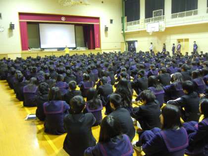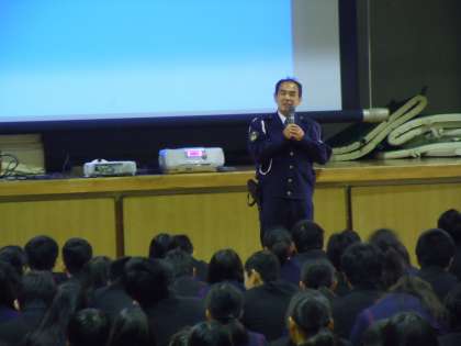 自転車の事故が心配されるので、学校に西淀川区の警察から来ていただき、自転車事故の様子や身の守り方を教えてもらいました。