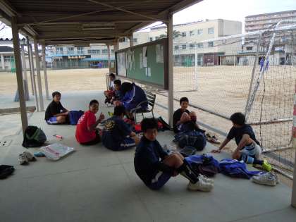 運動をしている生徒は、半パンツで頑張っていますが、じっと立っていると、少し寒さが感じられます。