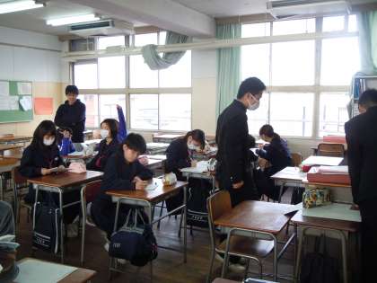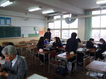 教卓の周りを含め、質問をしている生徒と答えている先生。