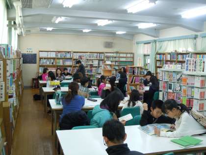 受験生は、受験時間まで図書室で待機してますが、問題集を開いてがんばっています。