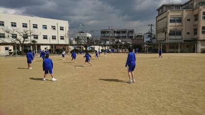 男子がドッチボ−ルで女子がキックベ−スボ−ルでした。どのクラスも一生懸命にがんばっていました。応援する態度も大変良かったです。