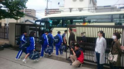 予定通り、淀中学校を出発しました。お見送りに来ていただいていた保護者のみなさま、ありがとうございました。