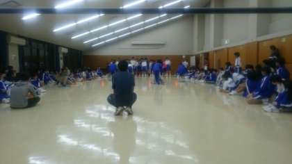すり足ずるずる っていう競技です。新聞紙を破らないようにすり足で移動します。盛り上がりも最高潮に達しました。