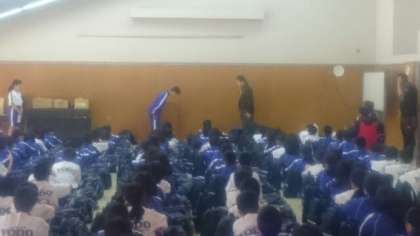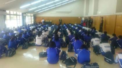 るり渓少年自然の家で2日間を過ごし、退所式を行いました。感謝の気持ちを込めて、あいさつをしました。職員のみなさん、ありがとうございました。