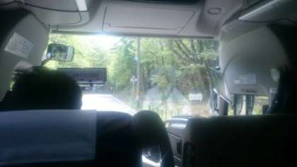 バスに乗車しました。予定通り、淀中学校にむけて、出発しました。