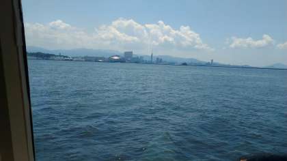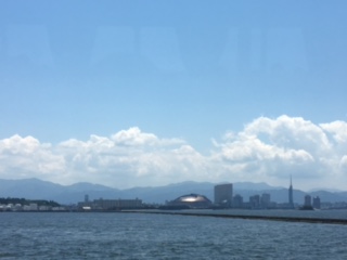 ジェットフォイルに乗船し、博多港を出発しました。気持ちのいい天候に、ウキウキします。