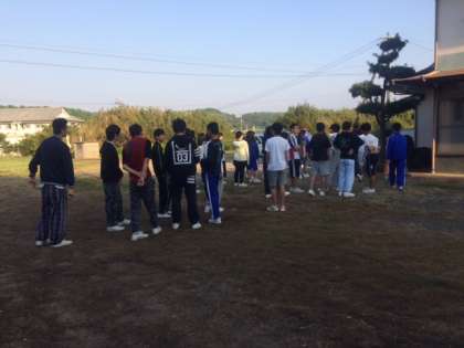 昨晩のレクリエーションで使用した、花火のごみ拾いを今からします。