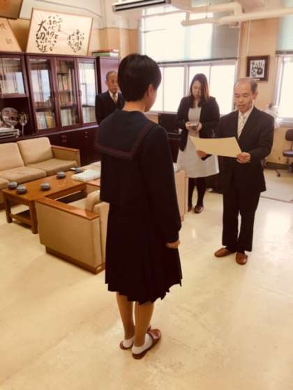 平成29年度中学生の「税についての作文」表彰を受けました。