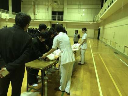 看護師、助産師さんに来ていただいて講話、体験をしました。