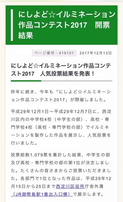 にしよど☆イルミネーション作品コンテスト2017 開票結果が発表されました。