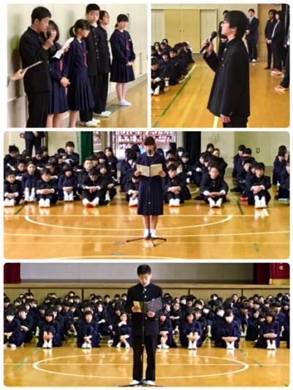 生徒会主催の対面式では、新入生代表、在校生代表の挨拶を行いました。