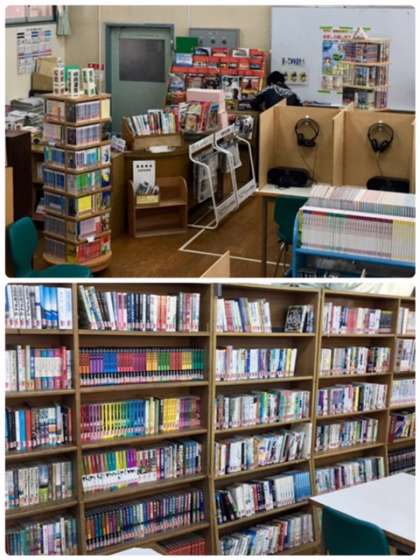 淀中学校図書室です。毎日昼休みと放課後に、学校元気アップボランティアの皆様のご協力をいただき、開館しています。