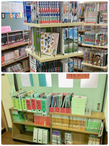 たくさんの蔵書があります。自習にも使用できます。今年は、高校受験対策コーナーが一新しました。活用してください。