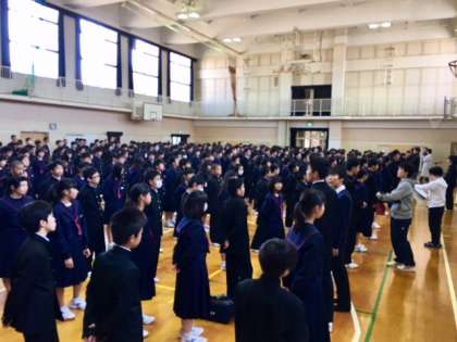 おはようございます。今朝も全校集会を行いました。昨日より集合状態は良くなりました。集団の一員である意識が育っている様子が見取れます。