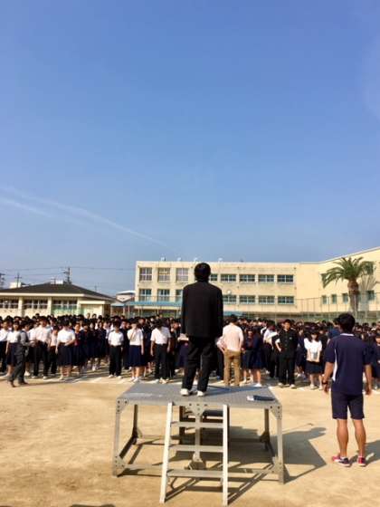 陸上部の杉本雄大君が走幅跳で、中山寛人君が三段跳びで大阪府大会で優勝しました。全校集会で表彰状を披露しました。また、北田璃帆さんが第39回朝日少年少女囲碁名人戦府大会優勝したことが朝日新聞に掲載されていることを紹介しました。