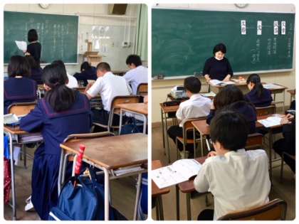 1年生の授業の様子です。国語は習熟度別少人数等の授業で、学級を分割して行っていました。