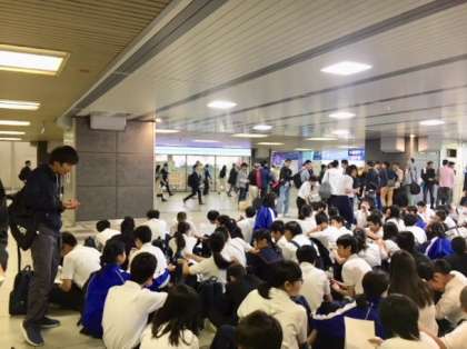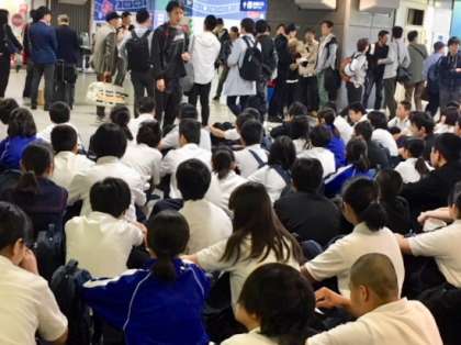 2年校外学習です。参加予定の生徒は無事全員の集合が完了し、今から班ごとに出発です!