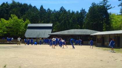 お弁当を食べ終わった生徒は、広場に出てカラダを動かしています。
