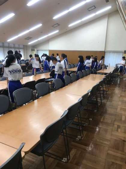 まもなく夕食の時間です。食事係がみんなの夕食を配膳してくれています。