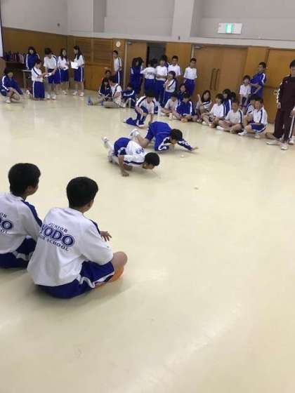 ストローで息を吹きかけて、ピン球を転がします。最後の人がゴールするまで一生懸命応援しています。