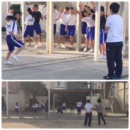 女子バスケットボール部はボールを使わずにトレーニングです。実に楽しそうです。