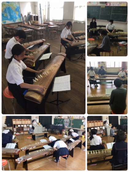 音楽部の今日の活動は箏曲です。礼に始まり礼に終わる、凛とした空気が素敵です。