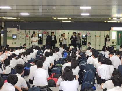 集合完了しました。3年生144名が新大阪駅に集合しました。残念ながら、体調不良等で参加できない生徒もいますが、その生徒の分もしっかりと成果を出したいと思います。