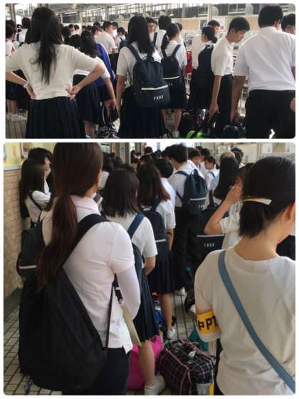 ホームに上がりました。新幹線の座席の順に並び替えています。
