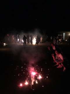 真っ暗闇の中を懐中電灯の光をたよりにグループごとに進んでいます。ときより「キャー」という叫び声がこだまします