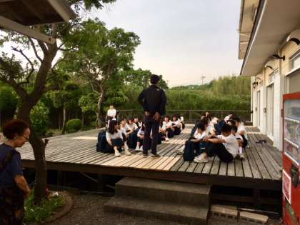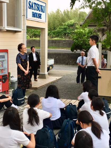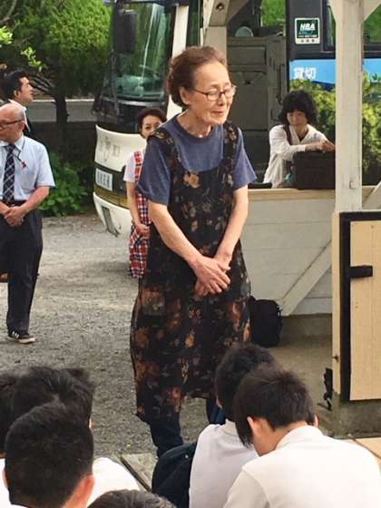 退所式の様子です。生徒代表のお礼の挨拶がありました。続いて、宿舎の女将さんからは「来た時は、孫がたくさん来てくれて嬉しい、でも帰ると寂しい。粘り強く生きてください。」とご挨拶いただきました。