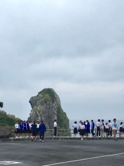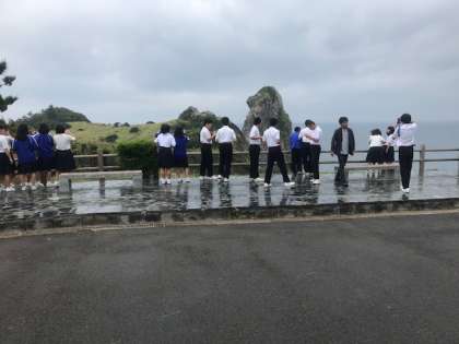 猿岩に着いた瞬間、雨が止みました!無事クラス写真を撮影できました。