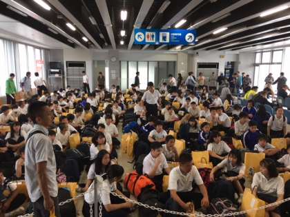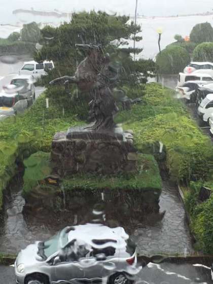壱岐でのすべての行程を終えて、芦辺湊フェリーターミナルに到着しました。バスが着くや否や、大雨が降って来ました。涙雨ですね。