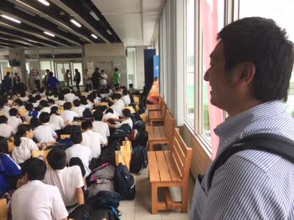 フェリーターミナルで、離島式を行いました。生徒代表のお礼の言葉、宿舎の代表者(七浜会)の方からのお話がありました。話の中に「18年前に、中学校で生徒として壱岐に修学旅行に来た当時の生徒が、教員として修学旅行を引率している先生がいます。」「来年も、今の2年生が壱岐に修学旅行に来てくれます・・・」と話がありました。3年生の生徒からご家族、先輩、後輩に話をして共有したいです。