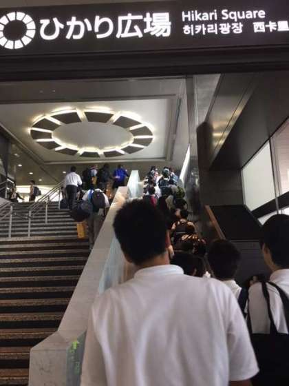 新幹線のホームに移動しています。
