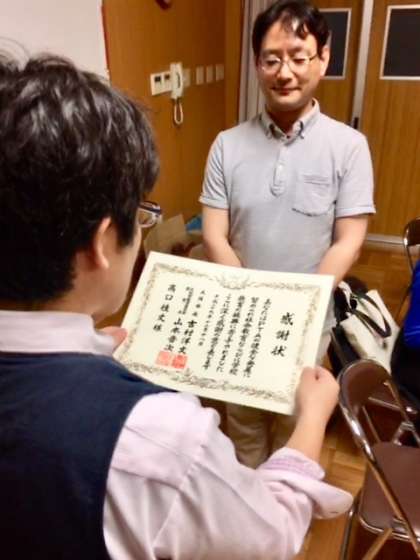 実行委員会の冒頭に、前PTA会長の高口佳丈様に、吉村市長、山本教育長より感謝状が贈呈され、鴻上PTA会長より披露・伝達していただきました。高口前会長様、学校教育の振興にお力を注いでくださりありがとうございました。