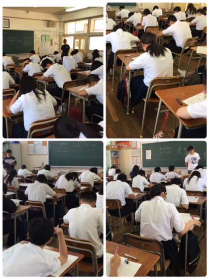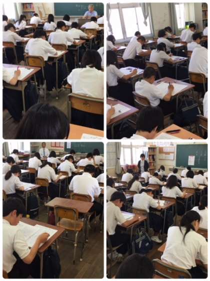 今日のテストは、国語、社会、音楽(1年生のみ)です。どの生徒も一生懸命に問題に取り組んでいます。