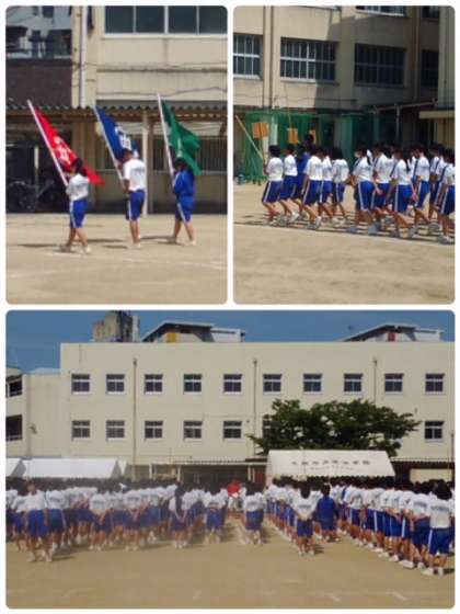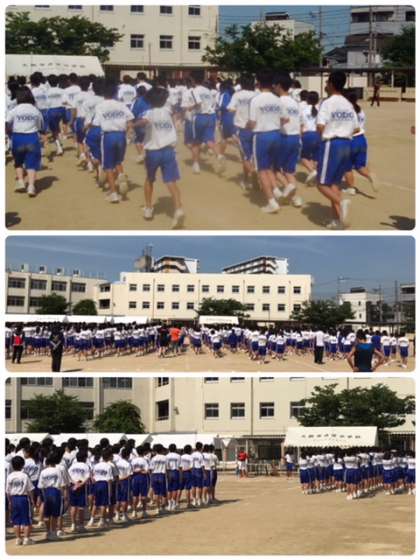 5・6時間目は体育大会全体練習を行いました。とても良い天気です。開会式や閉会式の練習を行いました。生徒の元気な声が響きわたっています。