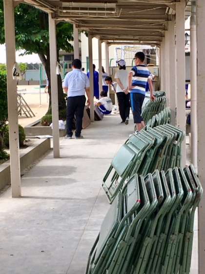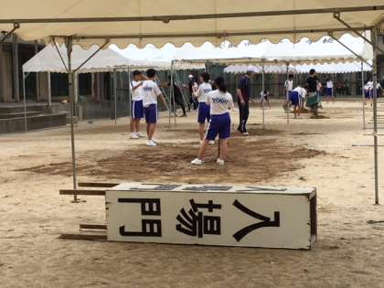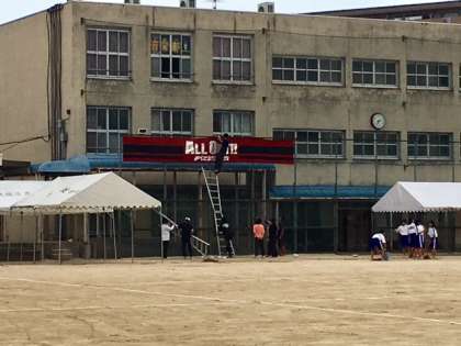 午後は係生徒が教員と共に体育大会の準備をしています。