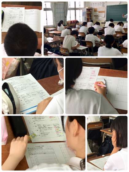 1年生は、期末テストを1週間前に控えて、特別活動の時間を使って「テスト計画」をしています。合わせて、教育相談で担任の先生に話を聞いていただいています。