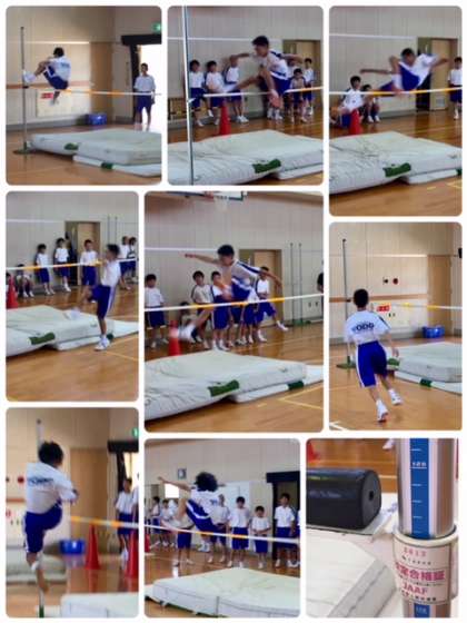 3時間目、教育実習の林貴志先生が研究授業を公開してくださいました。1年体育の走り高跳びです。生徒たちは互いに助け合い、記録の測定をしました。