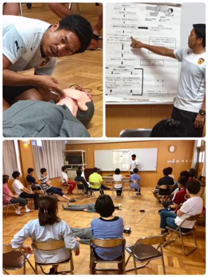講師は黒川先生にお願いしました。最初は座学で救急救命を学習しました。救急救命と蘇生について丁寧に指導していただきました。
